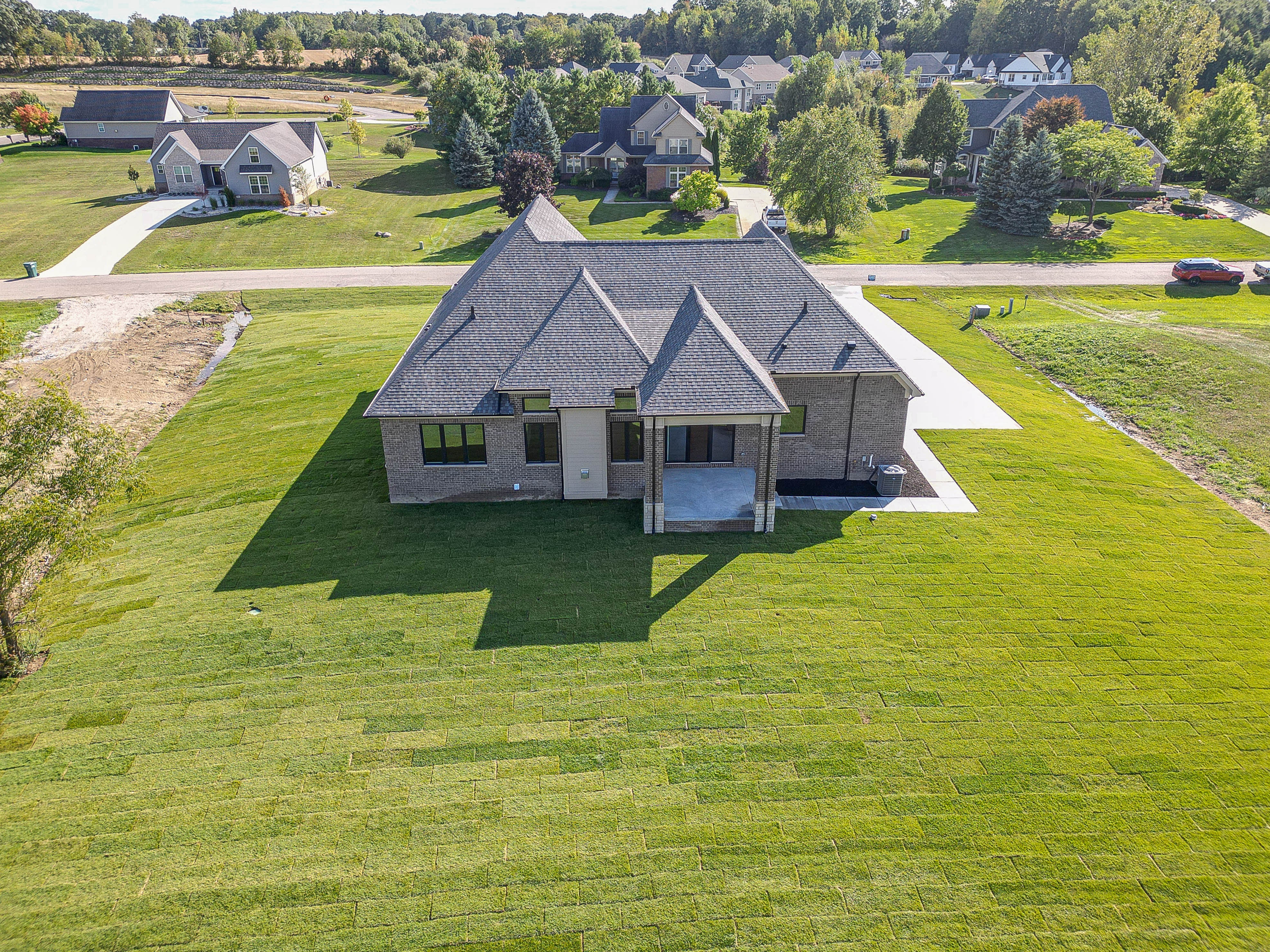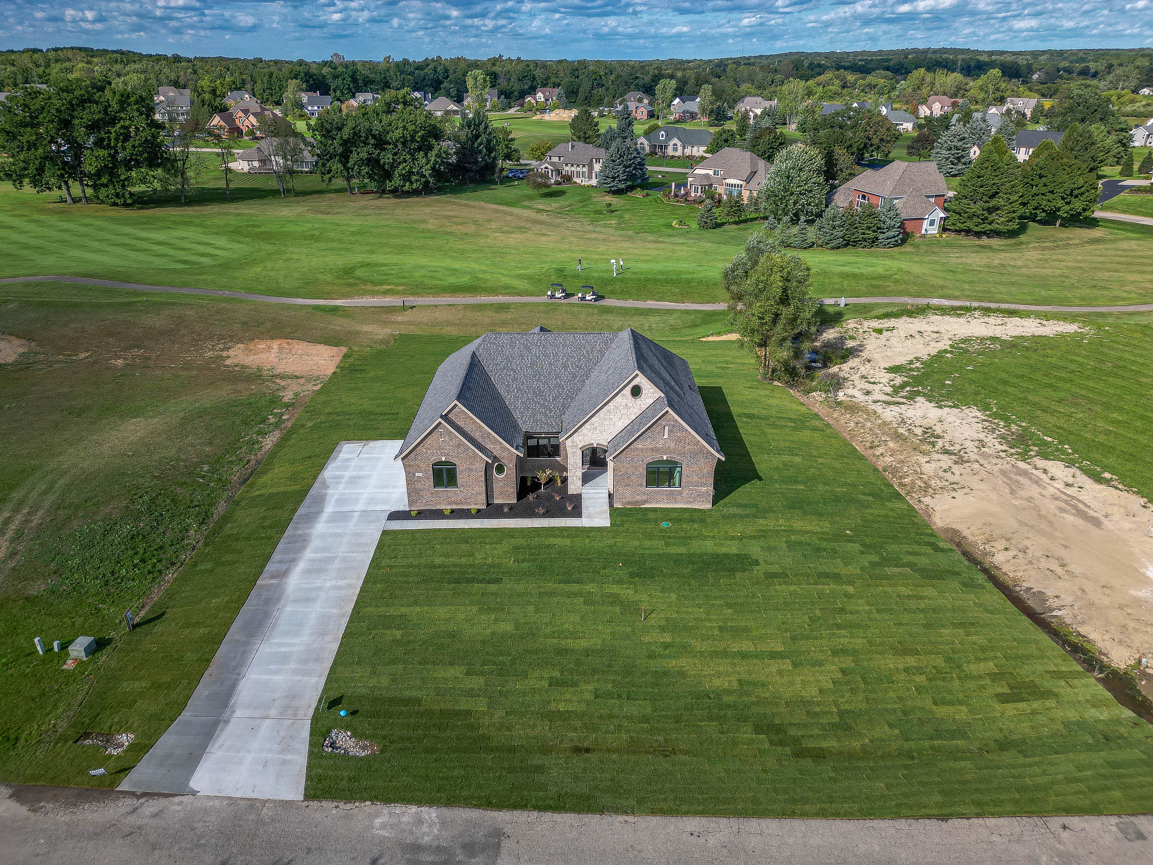 Welcome to SGM Homes’ custom-built ranch style home that sita on the breathtaking 9th hole of the Metamora Country Club Golf Course. After walking in through the solid 8ft iron doors, you are welcome’s by a gorgeous grand foyer alongside a spacious dining and living room. The custom kitchen includes granite countertops, luxury cabinets, and is adjacent to a spacious nook area. This open floorpan with 10-14 foot ceilings, custom molding, real hardwood floors, and solid wood doors throughout the home is the perfect place to call home. The primary suite includes a large walk-in closet and a private bathroom. The 3rd bedroom also has a walk-in closet and shares a Jack-and-Jill bathroom with the 2nd bedroom. The basement also has a wine cellar or safe room ready to be finished. The 3-car garage and 20 foot wide driveway provides more than enough space to park the cars and family golf cart. Entertain family and friends under the covered Lanai, taking in all the beauty that Michigan has to offer.