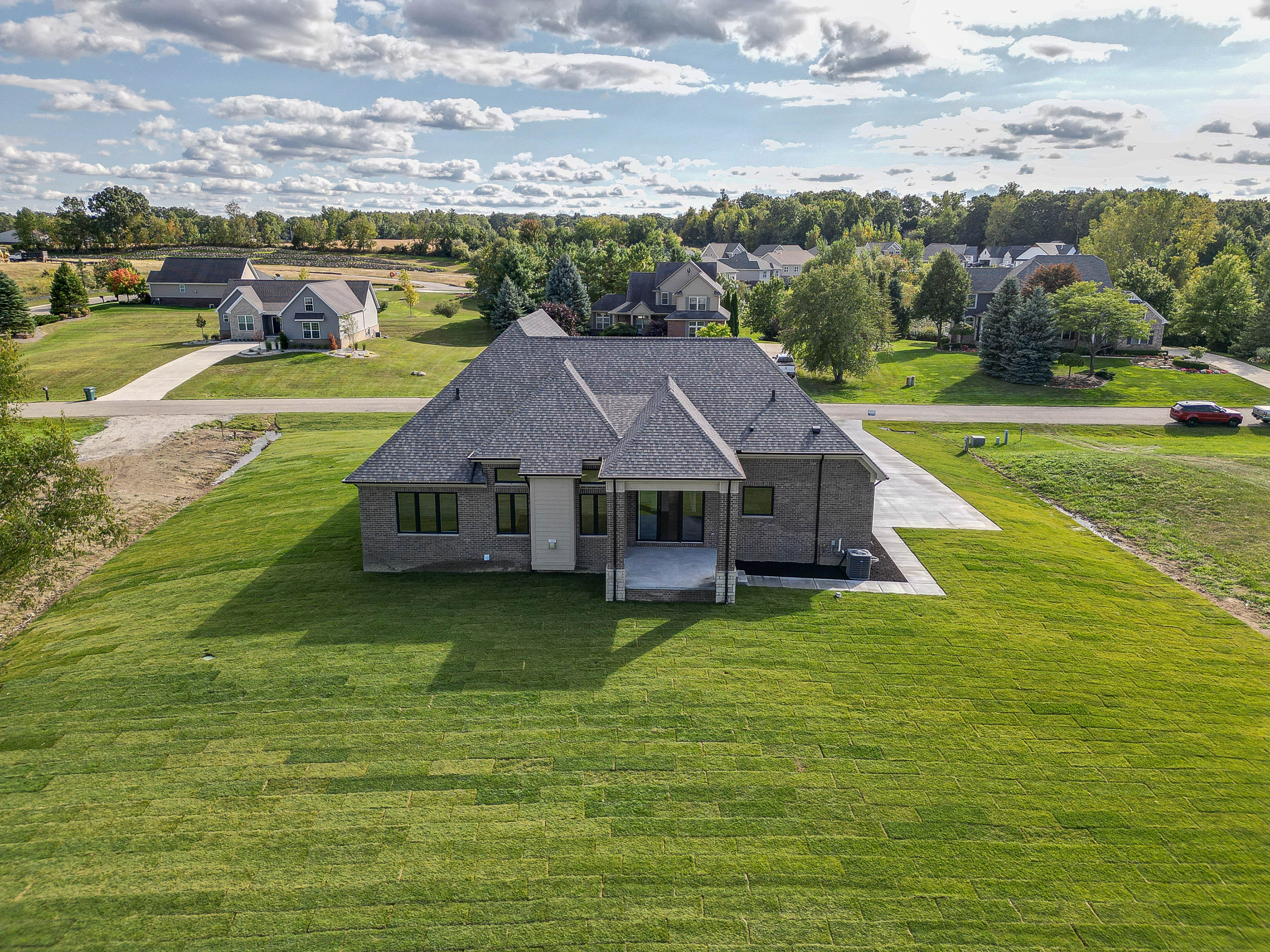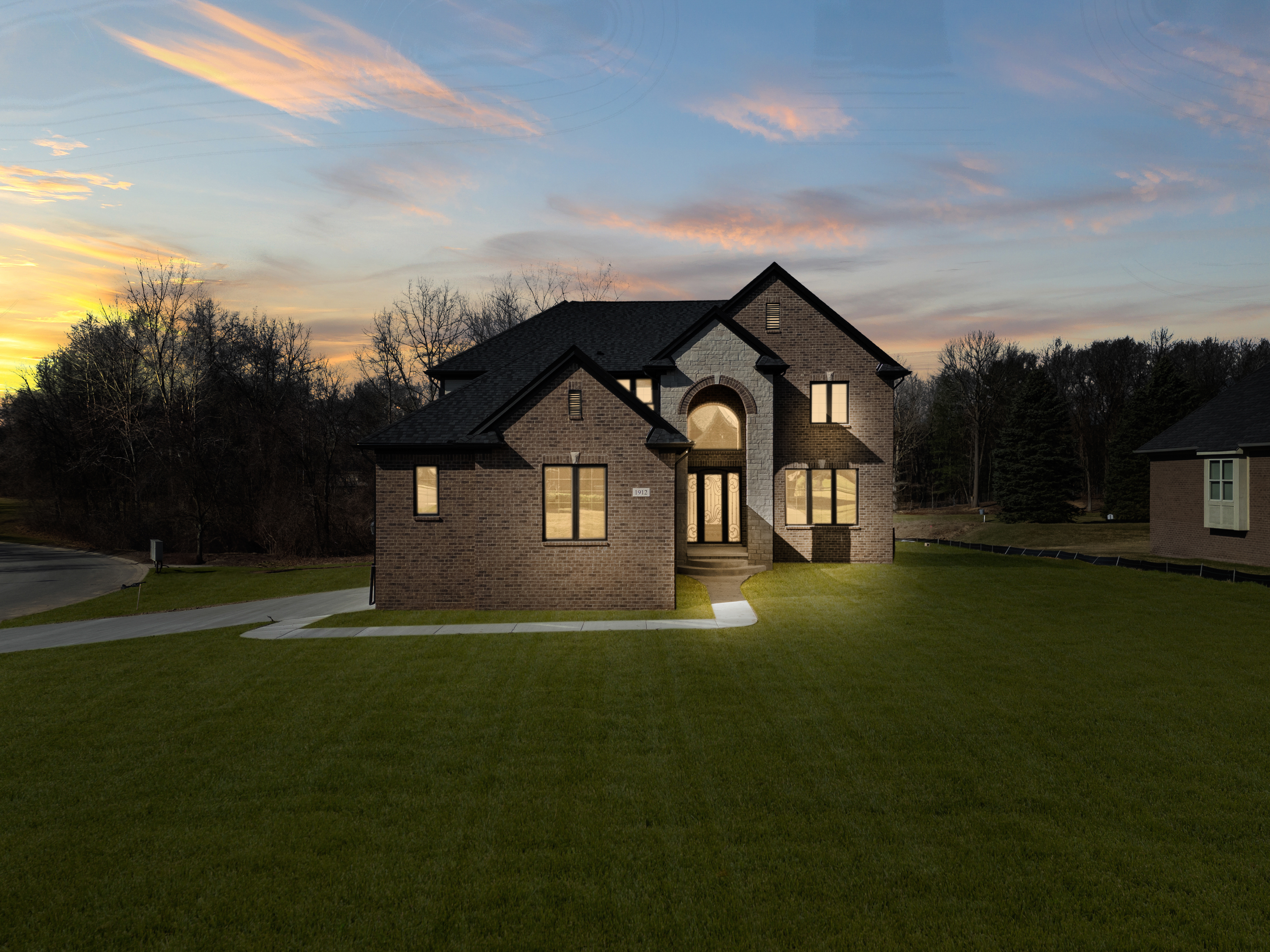 This custom home offers a stunning new-build located in the picturesque township of Oxford, Michigan. This exquisite 2-story brick colonial offers the perfect blend of luxury, tranquility, and community living in a large corner lot. It boasts a spacious 4 bedrooms and 2.5 bathrooms. Enter through the beautiful solid iron door. The open-concept living spaces feature beautiful hardwood floors through the first floor, high ceilings, and high-end finishes, creating an inviting and elegant ambiance perfect for entertaining and everyday living. The 3 car garage gives plenty of space for cars and golf cart.